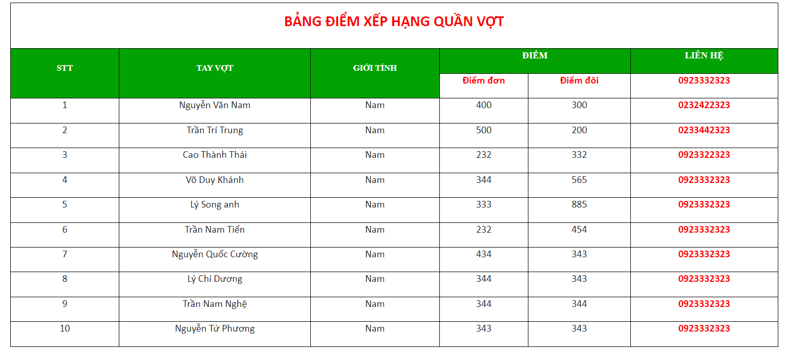 ĐIỂM HỌC VIÊN
